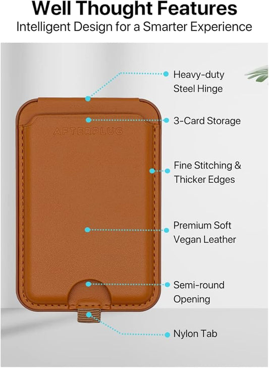 Afterplug Magnetic Wallet & Stand for iPhone 15/14/13/12 Series and MagSafe Compatible Phone Cases. (Not Support iPhone 13 & 12 Mini) | Brown