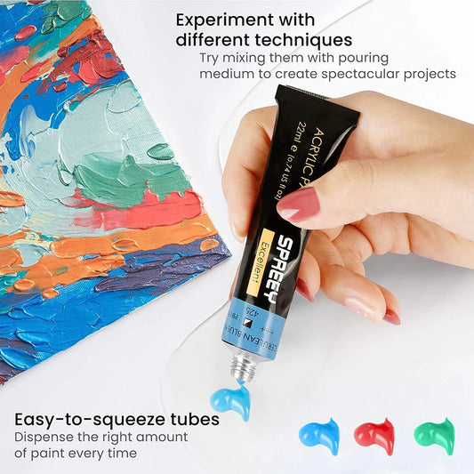 Acrylic Paint Set of 60 Colors Tubes (22 ml/0.74 oz.) Non toxic & Rich Pigments Acrylic Paint Kits for Beginners, Students & Artist, Art Supplies for Canvas Painting, Wood, Ceramic, Fabric