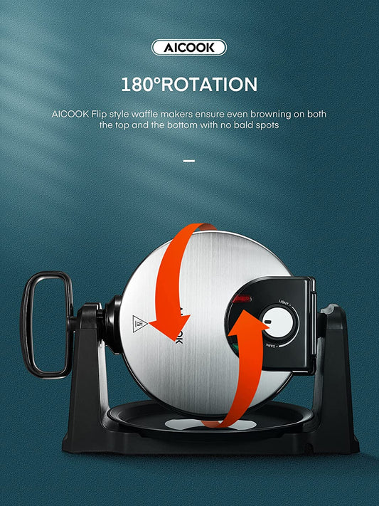 AICOOK Mini Waffles Maker for Individual, 1200W, Adjustable Temperature Dial, Nonstick Plates, Black