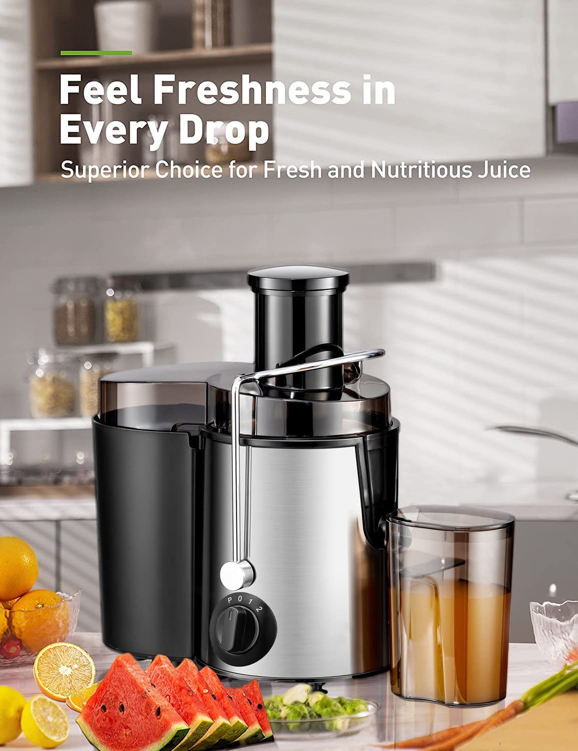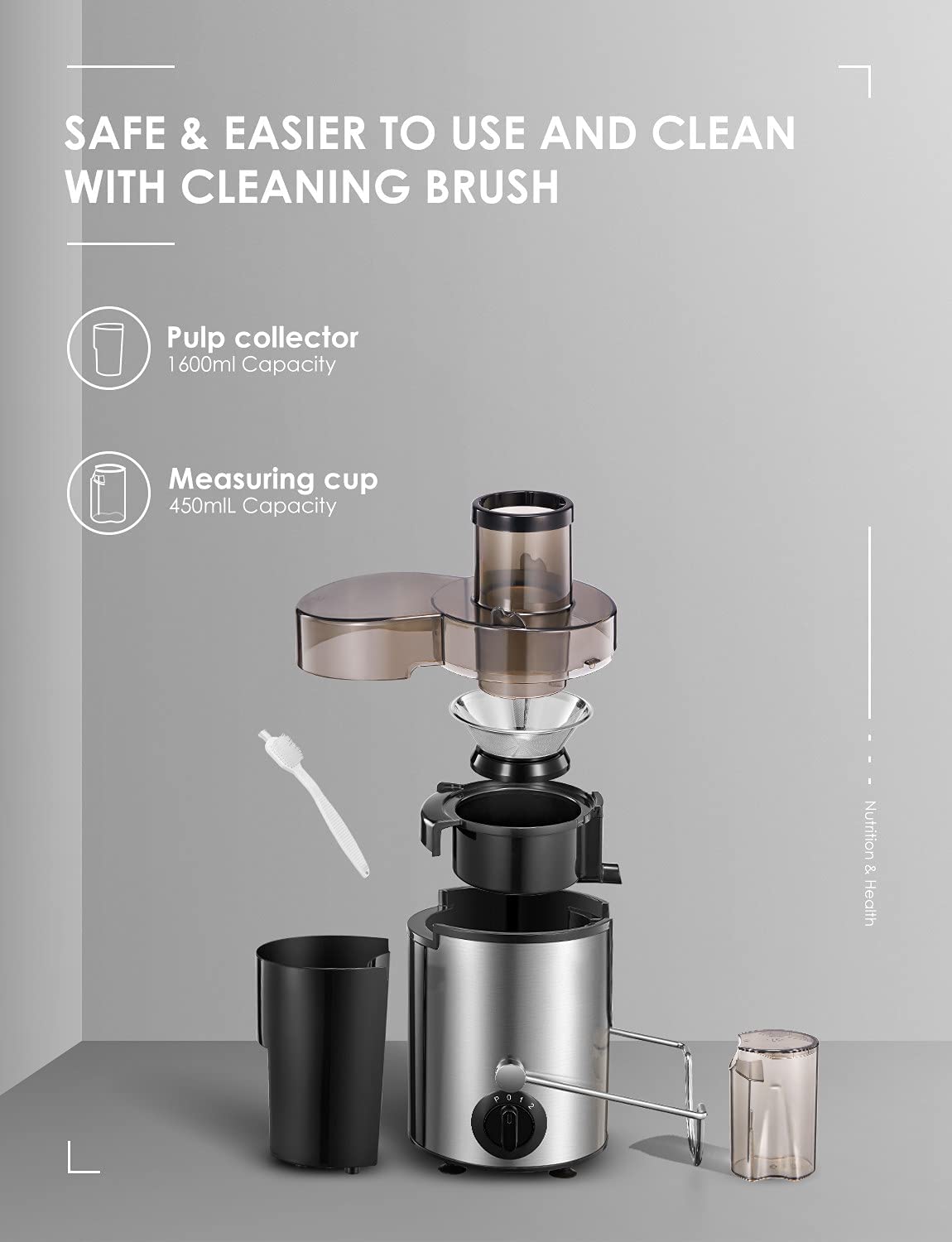- 【 CENTRIFUGAL JUICER with 3" FEED CHUTE】AICOK juicer extractor is designed with 65mm largemouth, Fit a whole apple, a peeled orange, or a handful of kale and other fruits and vegetables, saving prep time to get the delicious juice. In addition, the safety lock arm ensures that the cover remains tight during operation.