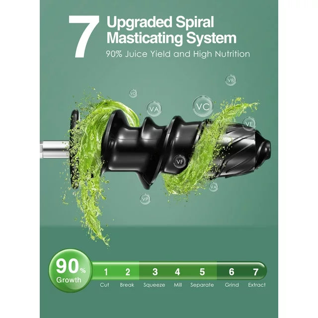 【Fully Grinding & 90% Yield】 Juicer adopted pure-copper motor, 7 spiral segments plus optimized low speed grinding setting ensures fully squeezing and extracts up to 90% juice, which is 10% higher than the ordinary juicer machines, meanwhile, reduce oxidation and provide the richest nutrition.